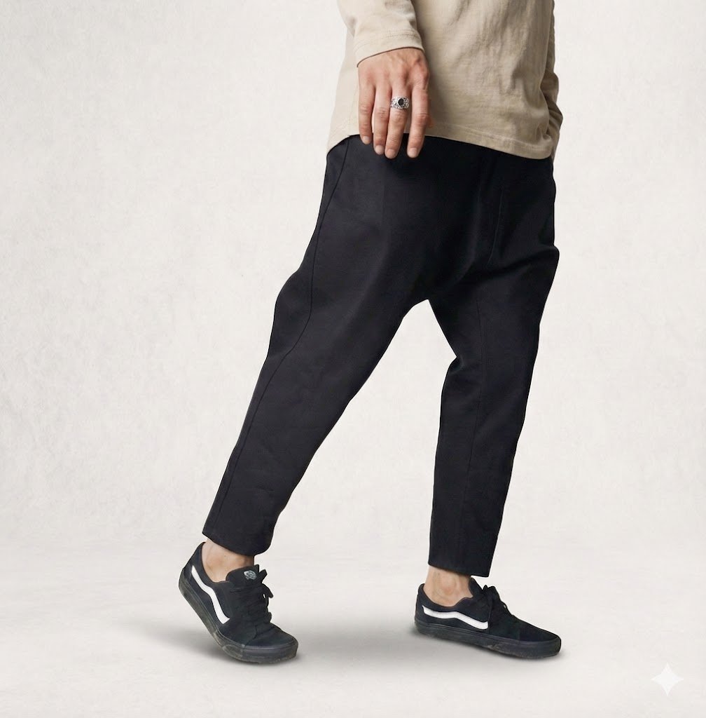 طول يعلو الكاحل (Cropped): طوله المميز الذي ينتهي فوق الكاحل يجعله مثالياً لاستعراض أجمل أحذيتك الرياضية (Sneakers).